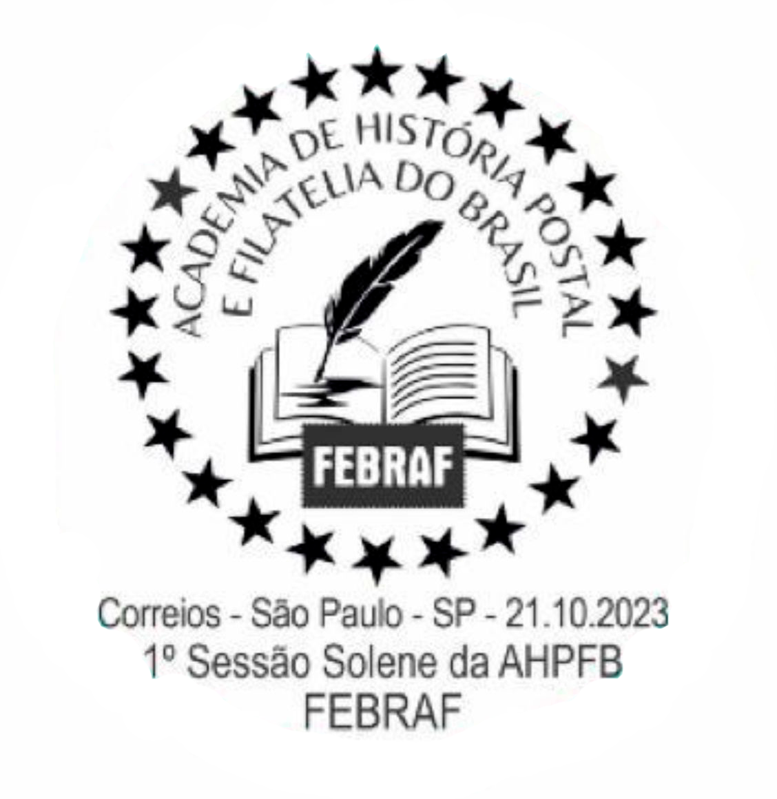 O logotipo da Academia de História Postal e Filatelia do Brasil - AHPFB foi idealizado pela diretoria da FEBRAF e desenhado por Ygor Pradella Chrispin em Julho de 2023.